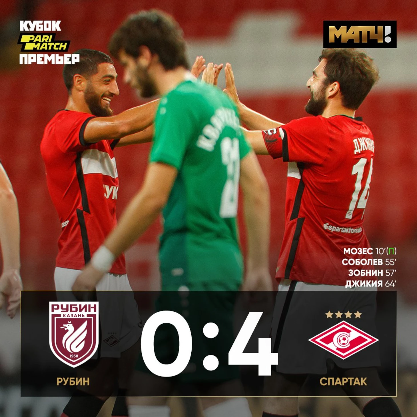 Голы: 0:1 Мозес (10, с пенальти). 0:2 Соболев (56, Игнатов) 0:3 Зобнин (59, Игнатов), 0:4 Джикия (63, штрафной).