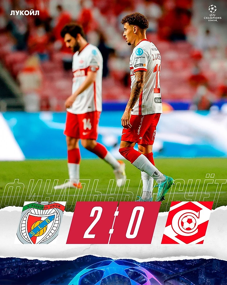 В Лиссабоне завершился ответный матч 3-го квалификационного раунда Лиги чемпионов, в котором «Спартак» проиграл «Бенфике» со счетом 0:2.