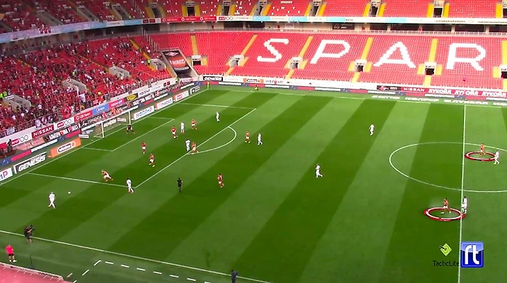 1) В обороне «Спартак» играл 5-3-2 – Ларссон и Понсе освобождались от глубокой обороны и после перехватов или длинных передач пробовали организовать вдвоём быструю атаку.
