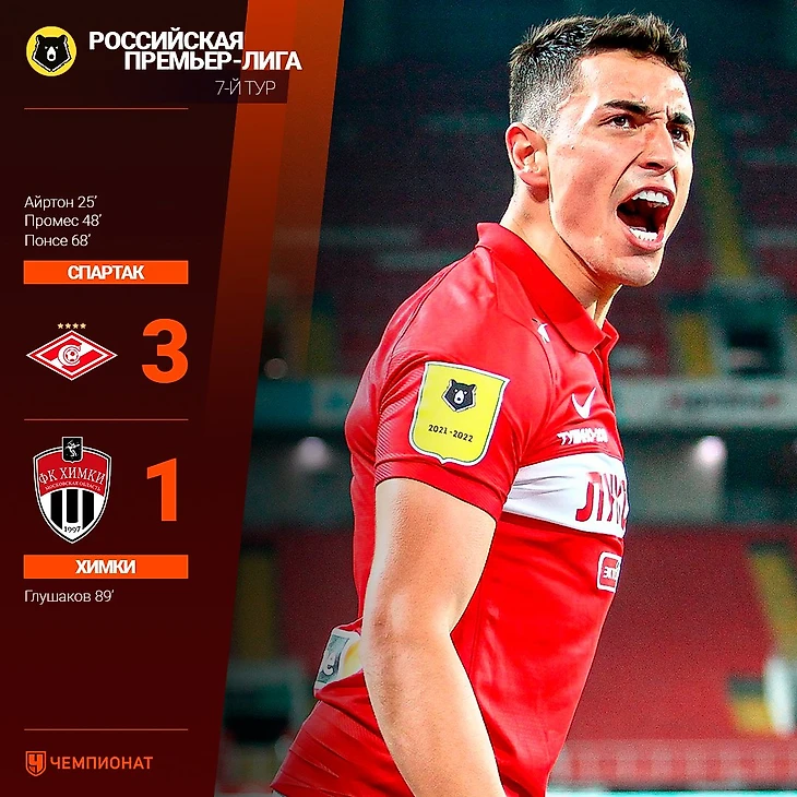 «Спартак» уверенно победил «Химки» на своем поле – 3:1.