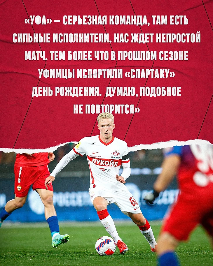 «Уфа» — серьезная команда, там есть сильные исполнители. Игра Гамида тому подтверждение. Так что нас ждет непростой матч. Тем более что в прошлом сезоне уфимцы испортили «Спартаку» день рождения. Думаю, подобное не повторится.