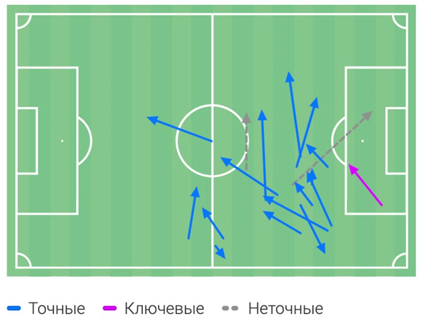 Как бы действовал на месте Ларссона более классный и адаптированный игрок? Он бы гораздо смелее и динамичнее двигался между линиями, искал варианты не только на сохранение мяча, но и на обострение. Пробовал бы сбрасывать давление, обводить, после чего просматривать штрафную на предмет интересного продолжения. Ларссон же даже не пробовал всего этого – ноль обводок, всего одно победное единоборство из шести за тайм, одна неточная передача в штрафную. В матче было зафиксировано лишь два интересных паса от него: заброс-парашютик (швед уже находился лицом к воротам – в таких случаях он способен включать тонкость), а также передача на второй темп Литвинову (предварительно Ларссон убежал на пространстве к лицевой и получил пас в зону, то есть это снова комфортный сценарий для него).