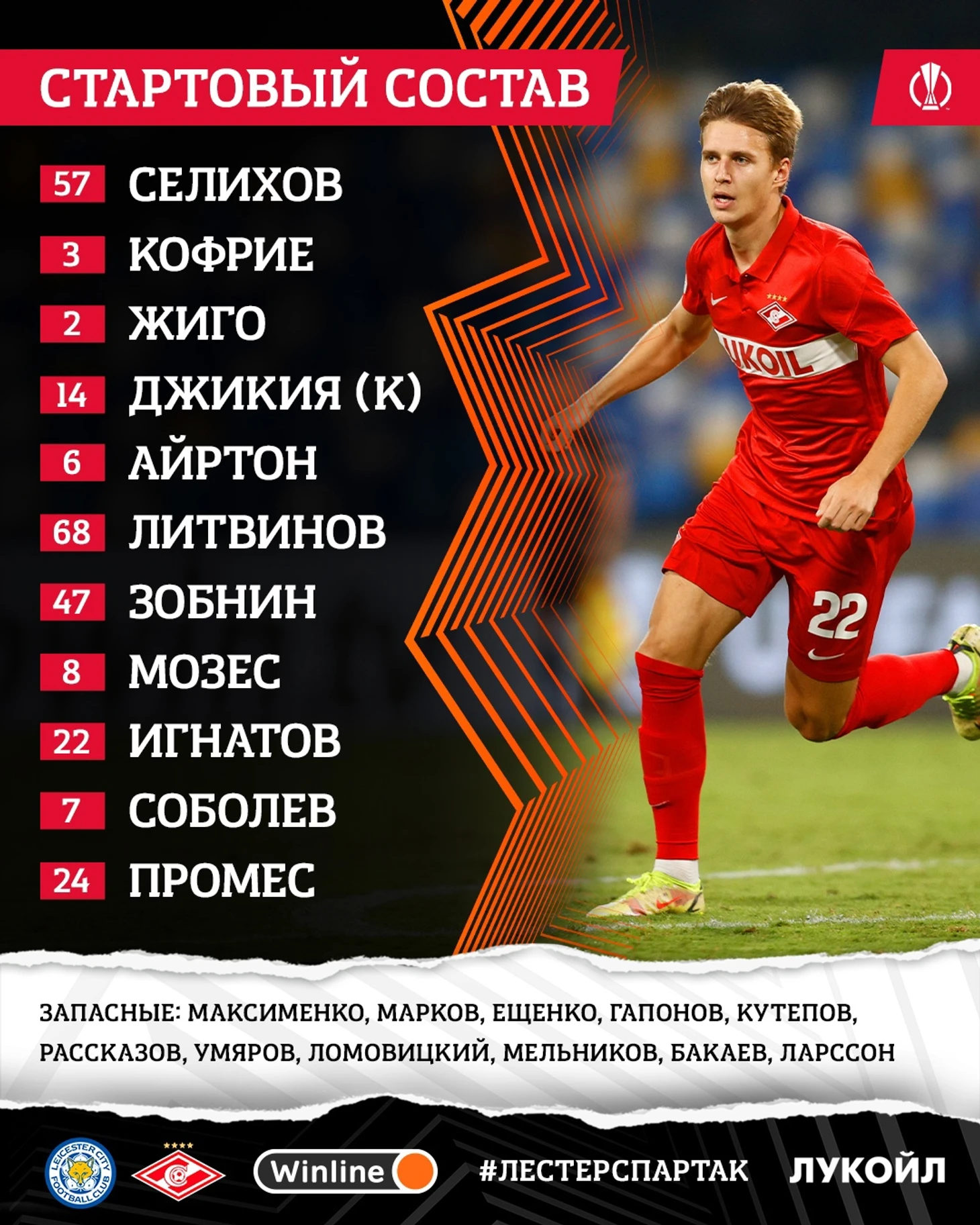 «Спартак»: Селихов, Кофрие, Жиго, Джикия (к), Айртон, Зобнин, Литвинов (Кутепов, 90+3), Игнатов (Ломовицкий, 86), Мозес, Промес (Умяров, 77), Соболев (Бакаев, 77).