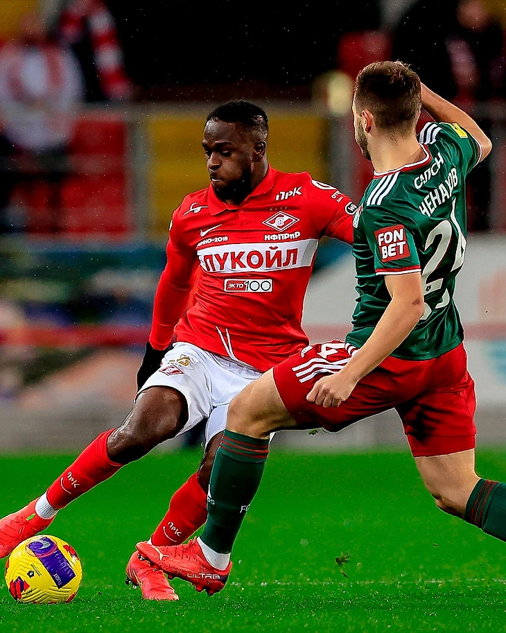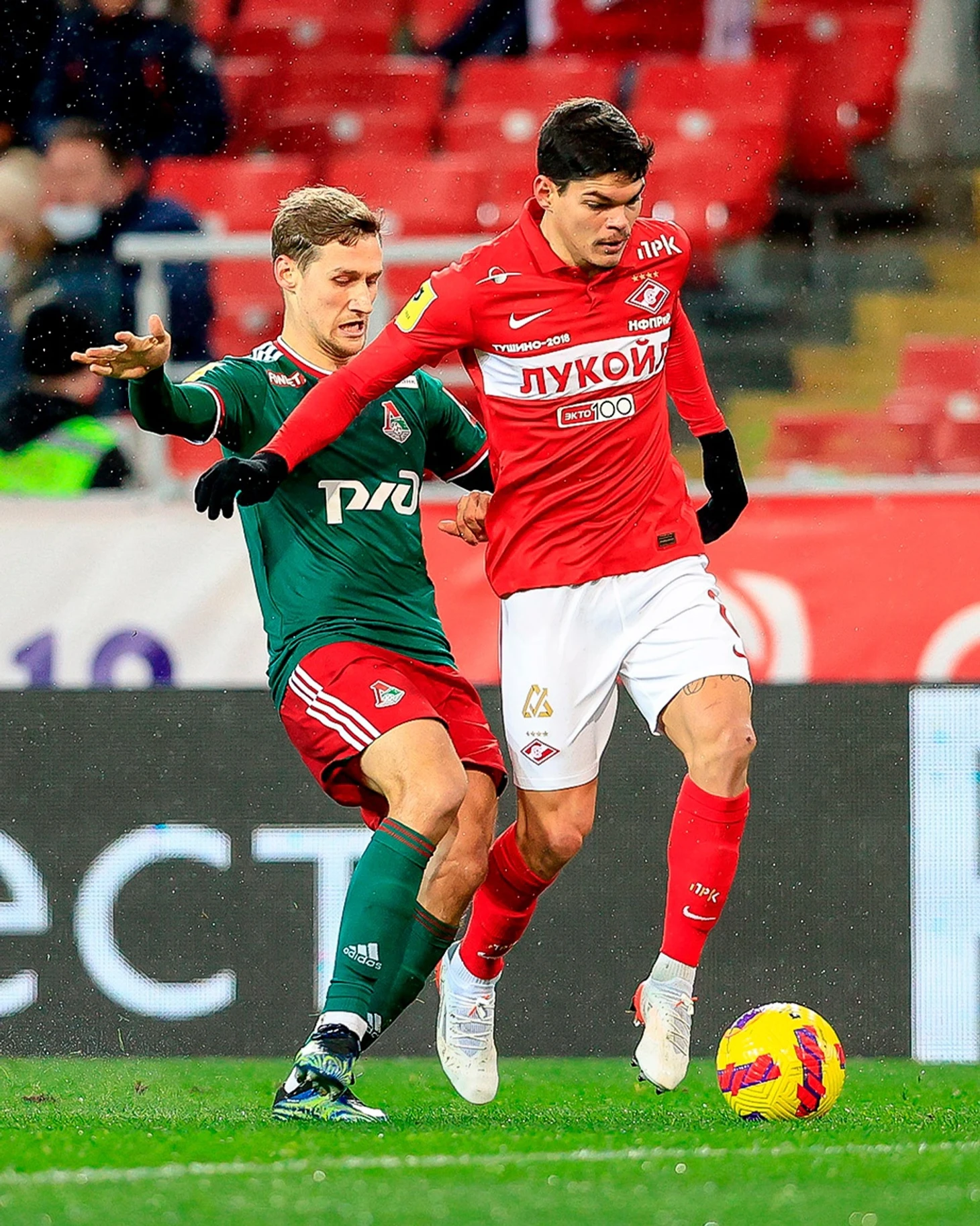 Красно-белые в нынешнем сезоне кошмарно выступают в родных стенах – всего три победы в 10 матчах, с учетом еврокубков. В последний раз здесь они выигрывали аж 25 сентября, у «Уфы» (2:0). Видно, что домашние игры оказывают на футболистов дополнительное давление. Первые минуты это и подтвердили – спартаковцы не бросались в прессинг, торопились расставаться с мячом и нанесли три неподготовленных удара. Из той же серии нервный фол Руслана Литвинова, руками вдали от своих ворот сорвавшего намечавшуюся контратаку гостей. На 35-й минуте он бросился в ноги оппоненту и досрочно покинул поле. Игроки «Локо» с мячом заметно переключали скорости – на своей трети поля размеренно катали мяч, а при переходе середины старались действовать более вертикально. Зачастую они искали зоны в полуфлангах между крайними и центральными защитниками, куда регулярно прибегал Федор Смолов. Обычно он находил мяч левее от центра – между Виктором Мозесом и Максимилианом Кофрие. Спартаковцы привыкли к такому алгоритму и оказались не готовы к нестандартному решению Франсуа Камано, роскошной диагональной передачей разрезавшему оборону хозяев. Мяч прошел между широко расставившимися Кутеповым и Георгием Джикией и оказался у Гирано Керка, за которым не успел Айртон.