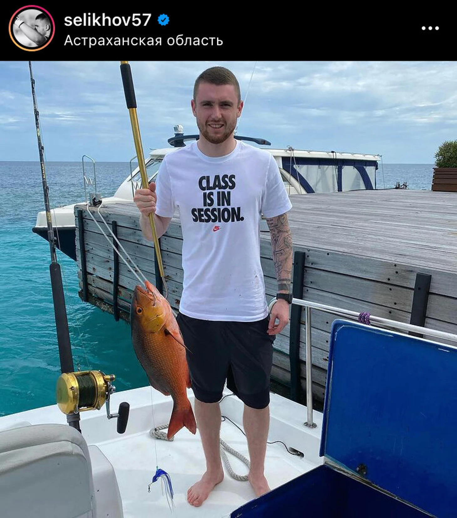— Сейчас уже зима. Сидеть у проруби… Такое Квинси вряд ли осилит! Вот летом с радостью все организую. Думаю, многие откликнутся — Джикия, Соболев и другие ребята. В море я, кстати, тоже выходил. Вид рыбалки назывался троллинг: надо было ловить с движущейся лодки. Сидишь, отдыхаешь — и ждешь, пока катушка затрещит. Одного оранжевого окуня поймал — большого, с мощными зубищами. И тунцов маленьких.
