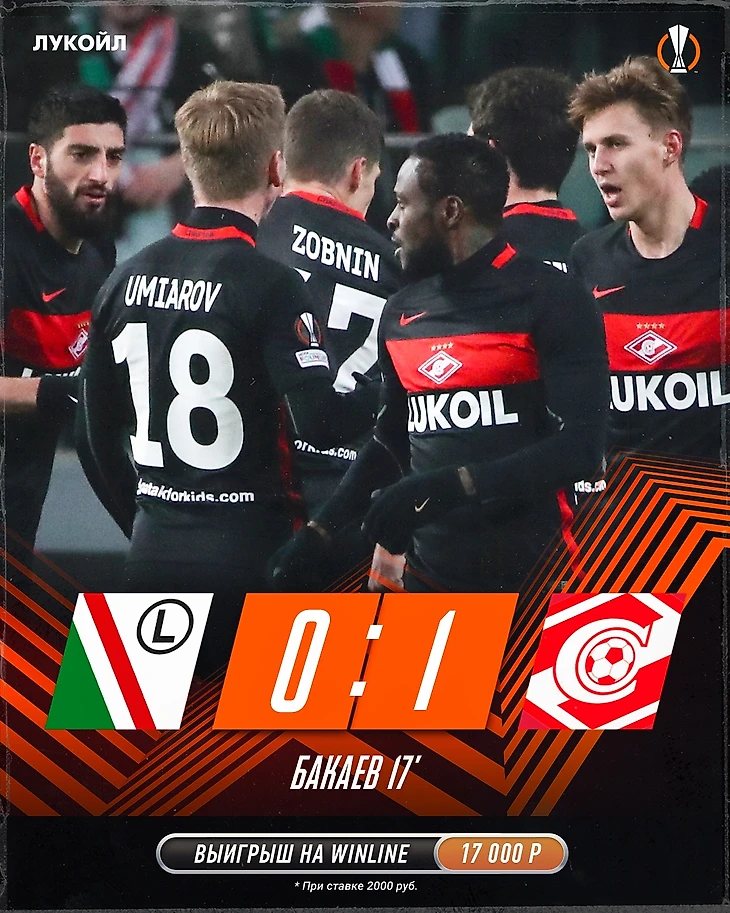 "Спартак" в гостях с минимальным счетом обыграл "Легию", 1:0. Гол в первом тайме забил Зелимхан Бакаев. До конца матча оставалось несколько секунд, когда после просмотра видеоповтора в ворота "Спартака" был назначен пенальти. Александр Селихов отразил удар игрока "Легии", сохранив победу для своей команды.