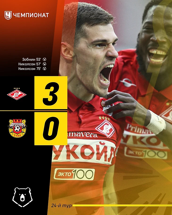 Гол «Спартака» случился вскоре после перерыва, несмотря на то что начало второго тайма красно-белые провели не настолько мощно. Удивительно, но «оружейников» обезоружил простой длинный заброс защитника со своей половины поля. Георги Костадинов проиграл позицию Михаилу Игнатову, а опорники «Арсенала» и Степанов прозевали врывание Романа Зобнина из глубины. Тут уже и Левашов был бессилен.