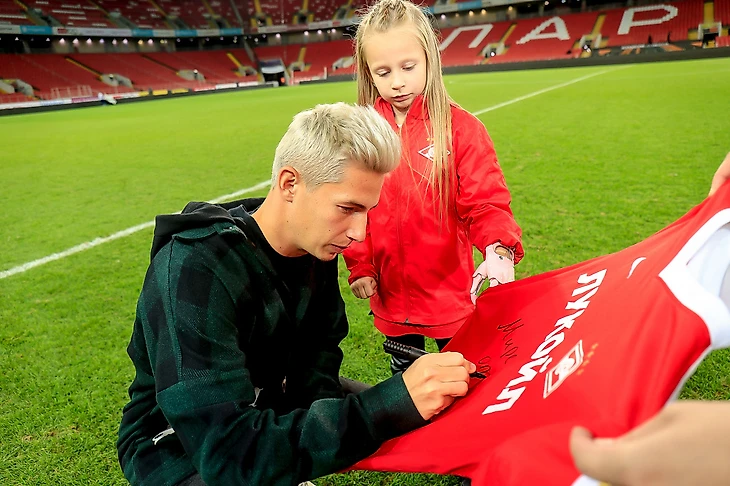 Ну а дальше случилась долгожданная встреча: после матча девочка с мамой встретились с полузащитником «Спартака» Антоном Зиньковским и даже вышли вместе на поле!