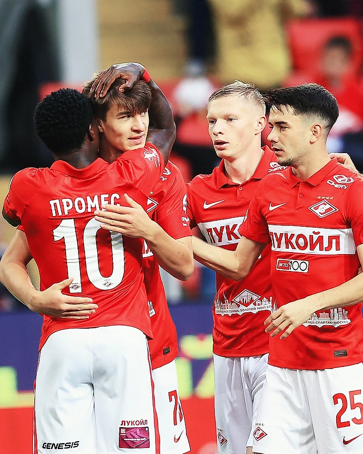 Красно-белые основное дело сделали до перерыва. Два мяча, забытых Мелешиным и Промесом фактически утвердили преимущество красно-белых в этом матче. После перерыва Соболев поставил красивую точку – 3:0! Было очевидно, что Гильермо Абаскаль выставит на игру смешанный вариант состава, поскольку впереди в воскресенье все-таки маячила встреча чемпионата России с «Локомотивом». Да и в любом случае желание посмотреть кого-то из резерва у тренерского штаба конечно же возникло. В итоге получился весьма любопытный кадровый расклад. Сходу в игру включился новичок команды – защитник Мевля. Было видно, что он еще не совсем освоился в команде, порой не успевал за развитием событий, но игрок он опытный и надо надеяться, что поможет спартаковцам.