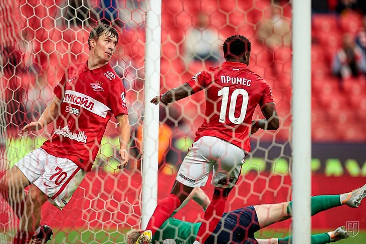 Обмен атаками, где опаснее был «Спартак», закономерно привёл к голу. Футболисты «Факела» умудрились допустить выход практически четыре в два, а Промес проткнул мяч в ворота. Кстати, благородно поступил Мелёшин — не стал отнимать гол у партнёра и дал мячу закатиться в сетку.