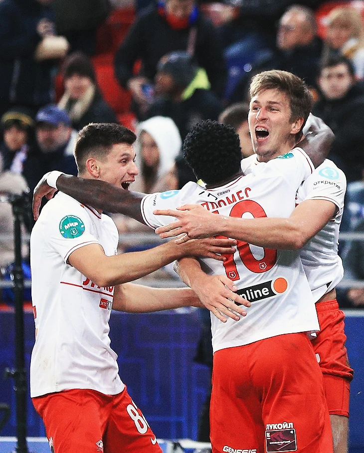 Гильермо Абаскаль после потери травмированного Умярова был вынужден перестроить и оборону, и полузащиту. В опорную зону ожидаемо перешел Литвинов, а пару Джикия в центре защиты составил Мевля. Не скажу, что эти перемены усилили команду, особенно это касалось Мевля, который, к сожалению, в целом не готов играть на таком уровне. Он, к слову, и упустил Чалова, открывшего счет. Правда, там случилась какая-то суматошная ситуация, когда сразу трое футболистов оказались лежащими на поле, но судья игру не остановил, а заброс на Чалова Мевля не уловил и проиграл ему в скоростном рывке. Удар нападающего ЦСКА был точен. В том, что Абаскаль постарается сделать замены в составе «Спартака» сразу же в перерыве, можно было не сомневаться. Так и случилось. Сели на скамейку Мевля и Литвинов, а вышли Зиньковский и Маслов. Так для «Спартака» все выглядело надежнее. Зиньковский вскоре это и доказал, получив передачу от Маслова и послав мяч по невероятной траектории в ворота ЦСКА – 1:1. «Спартак» опять вылезал из труднейшего положения, пропустив первым… А пятью минутами позже уже быстрая атака спартаковцев завершилась слаженной игрой Промеса и Соболева. Квинси на скорости собрал вокруг себя троих соперников, отдал пас убегавшему Соболев и тот ворвался по сути в пустую в штрафную площадь армейцев. Удивительно, но, если в первом тайме игроки ЦСКА очень быстро создавали у своих ворот численное преимущество, во втором команду словно подменили. То есть, она словно потеряла скорость. Чем быстрая атака «Спартака» конечно же не могла не воспользоваться. Что касается Абаскаля, то он лишний раз подтвердил то, что умеет делать своевременные замены.