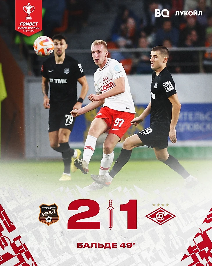 «Спартак» вылетел в Путь регионов Кубка России. «Урал» пробился в финал Пути РПЛ турнира, в котором сыграет с победителем пары ЦСКА — «Крылья Советов».
