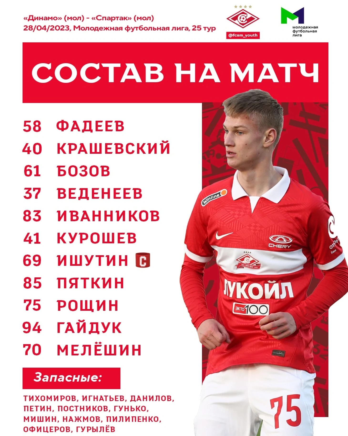 Запасные: Тихомиров, Игнатьев, Нажмов, Пилипенко, Мишин.