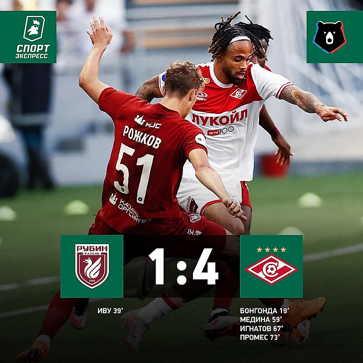 «Спартак» на выезде разгромил «Рубин», Медина забил дебютный гол