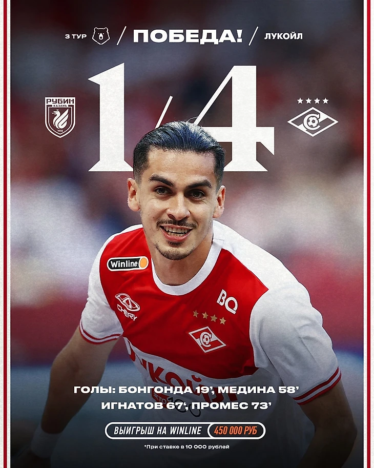 Сначала сработали замены. Медина, восстановившийся от повреждения, впервые вышел на поле в составе красно-белых, и забил менее чем через минуту вторым касанием! Хесус здорово переправил мяч в сетку головой после подачи Денисова с левого фланга.