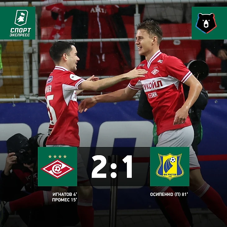 Голы Игнатова и Промеса принесли «Спартаку» победу над «Ростовом»