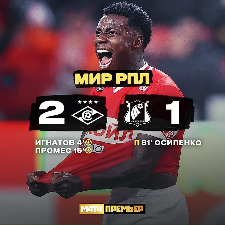 Спартаковцы не без проблем победили «Ростов» - 2:1.