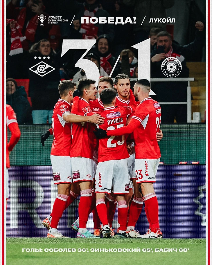 КРАСНО-БЕЛЫЕ ОДЕРЖАЛИ ВОЛЕВУЮ ПОБЕДУ И ВЫШЛИ В ПОЛУФИНАЛ ПУТИ РПЛ ФОНБЕТ КУБКА РОССИИ. ЖЕРЕБЬЕВКА СЛЕДУЮЩЕГО РАУНДА СОСТОИТСЯ 15 МАРТА.
