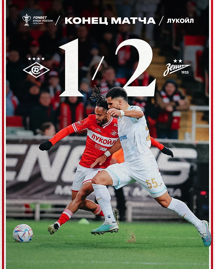 Завершился первый матч 1/2 финала Пути РПЛ Фонбет Кубка России между московским «Спартак» и санкт-петербургский «Зенит».