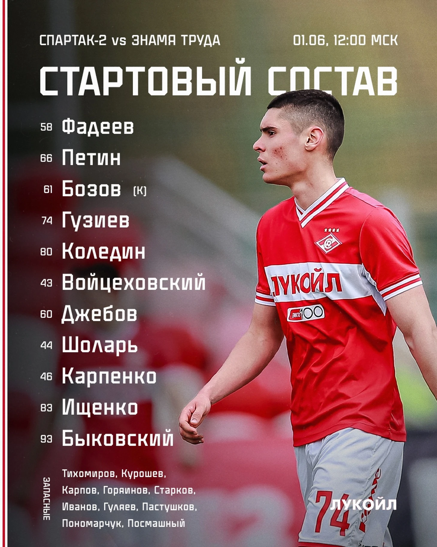 Запасные: Тимошенко, Стратан, Евшинцев, Карепин, Воробьёв.