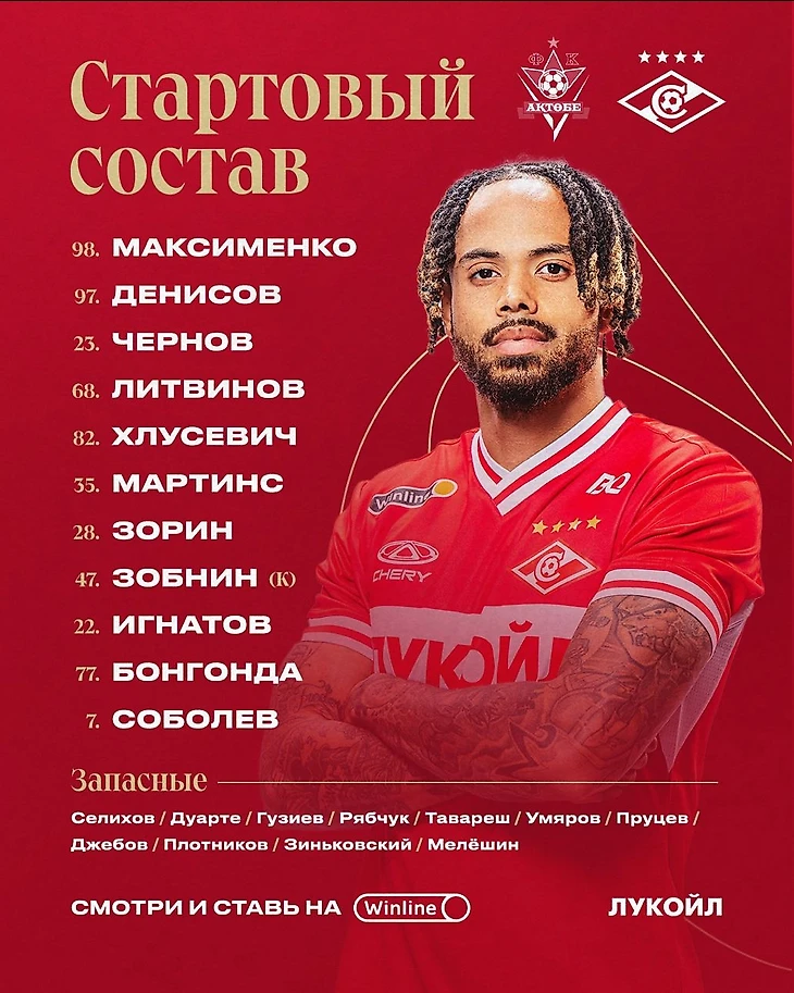«Спартак»: Максименко, Литвинов, Чернов, Денисов, Хлусевич, Мартинс, Зорин, Зобнин (к), Бонгонда, Соболев, Игнатов