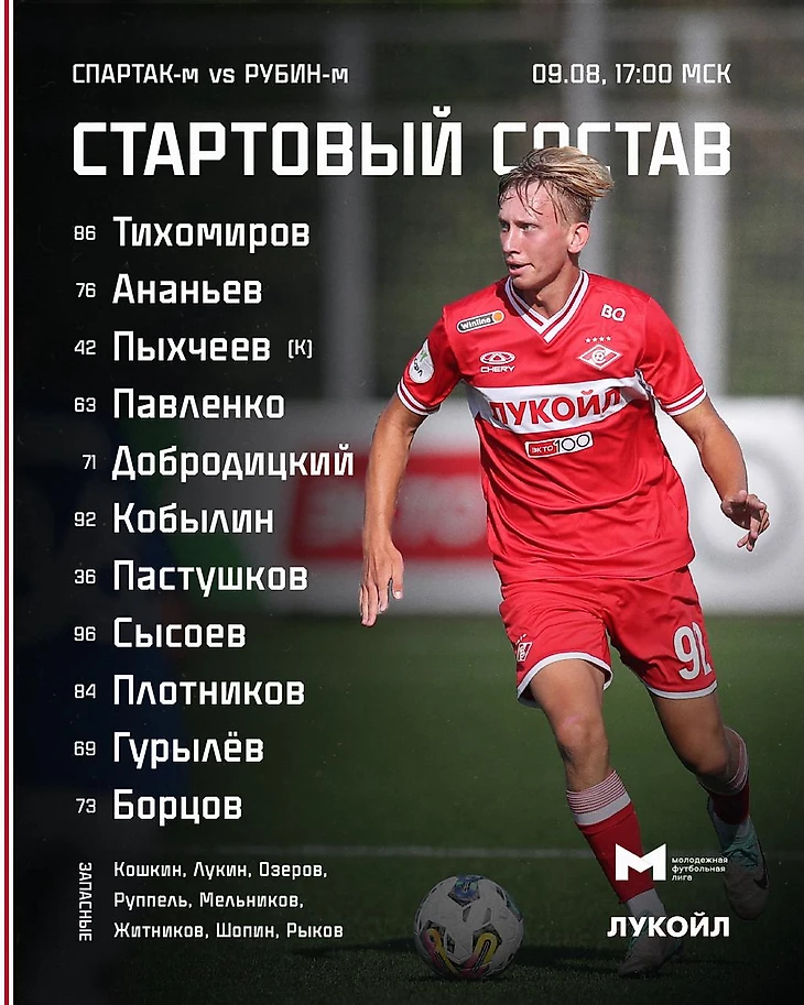 Ключевой момент. В матче первого круга «Спартак» забил победный гол «Рубину» на шестой компенсированной минуте, а в этот раз красно-белые фактически решили исход матча уже в начале первого тайма. На четвертой минуте Егору Сысоеву удался классный дальний удар, а еще через 10 минут он ассистировал Даниилу Плотникову.