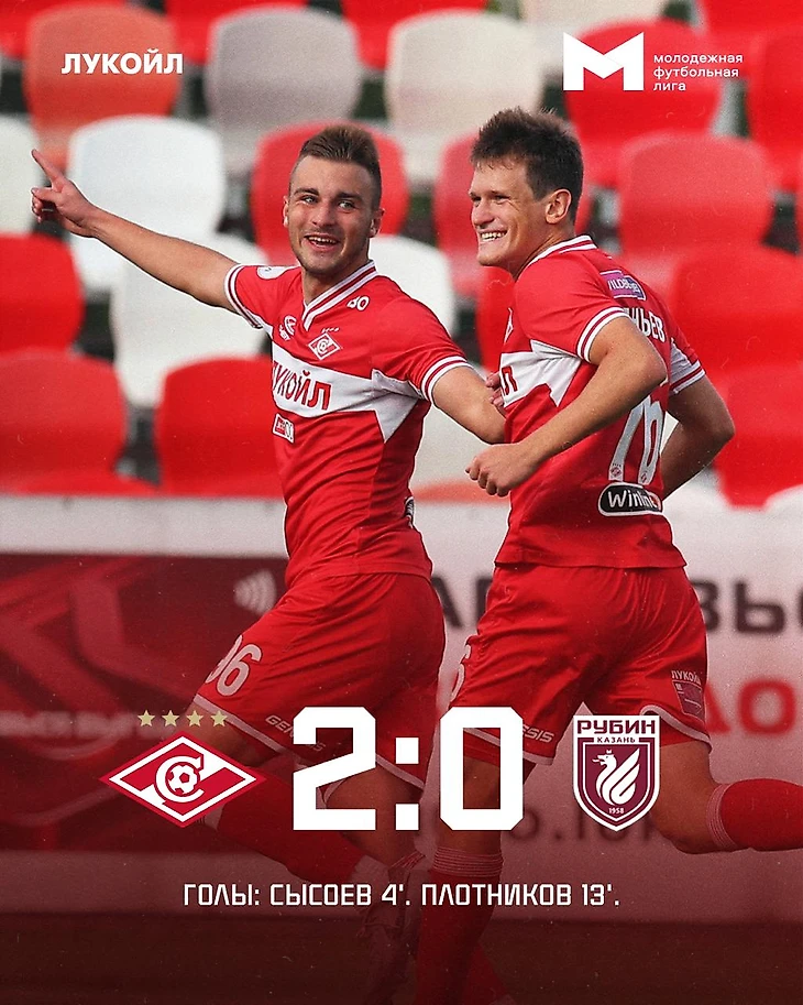 «Спартак» (мол.) — «Рубин» (мол.) — 2:0 (2:0).