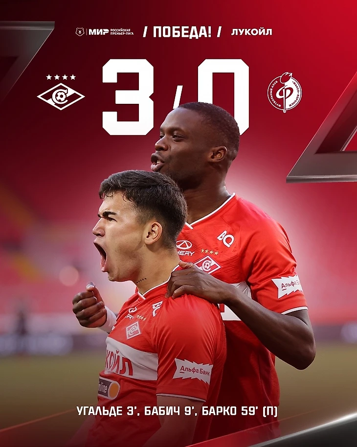 КРАСНО-БЕЛЫЕ ОДЕРЖАЛИ УВЕРЕННУЮ ПОБЕДУ В ДОМАШНЕМ МАТЧЕ, ЗАБИВ ДВА МЯЧА УЖЕ К 10-Й МИНУТЕ.