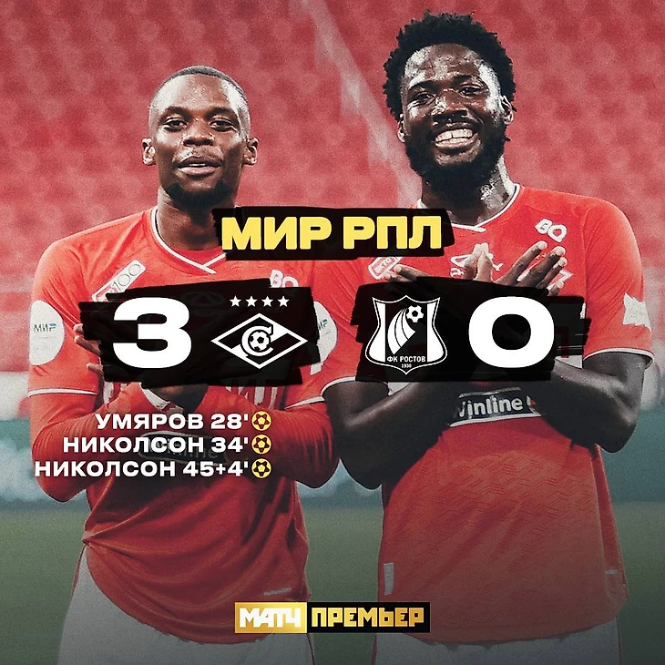 «Спартак» дома одержал крупную победу над «Ростовом» в матче 11-го тура РПЛ — 3:0.