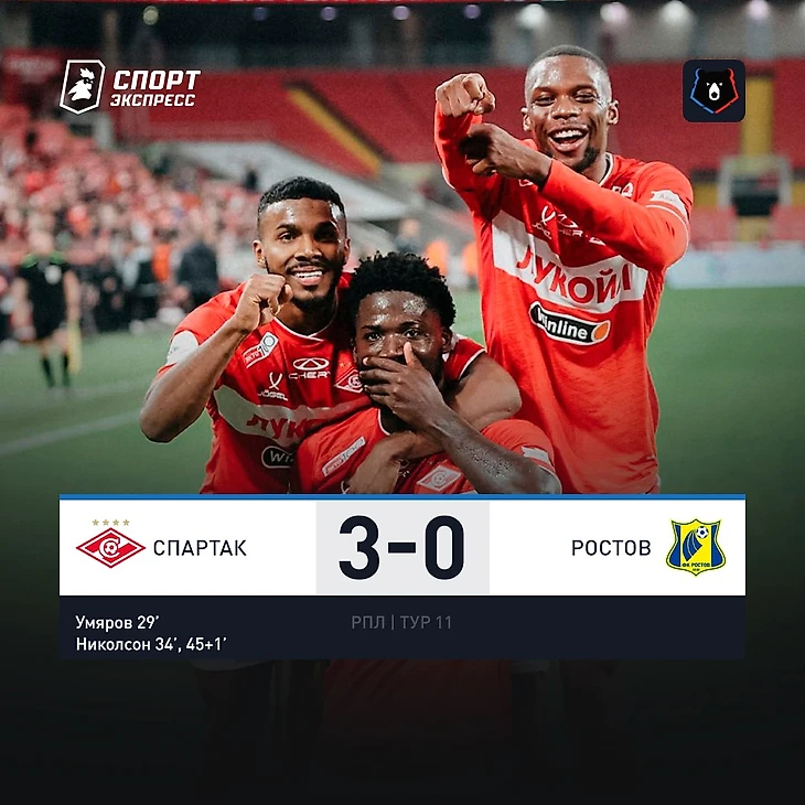 Думаю, что такое развитие событий в матче этих соперников вряд ли мог кто-то предположить заранее. Точнее даже надо говорить о первой половине матча, когда по сути все и решилось. Да, обе команды в трех подряд последних турах чемпионата прошли этот отрезок без побед. Но, «Ростов» еще и не забивал. И эта слабость ростовчан обозначилась уже в первой половине, когда спартаковцы по традиции больше владели мячом, но какое-то время не могли создать ни одной голевой ситуации у ворот гостей. А потом все изменилось, причем не без помощи обороны «Ростова». Красно-белые забили пять мячей, хотя засчитаны были только три. Нет, тут все верно, дважды Николсон посылал мяч в сетку, но, то вне игры, то рука помогла залететь мячу в сетку… И, тем не менее, еще пару голов, которые уже отменить было никак нельзя, Шамар все же провел.