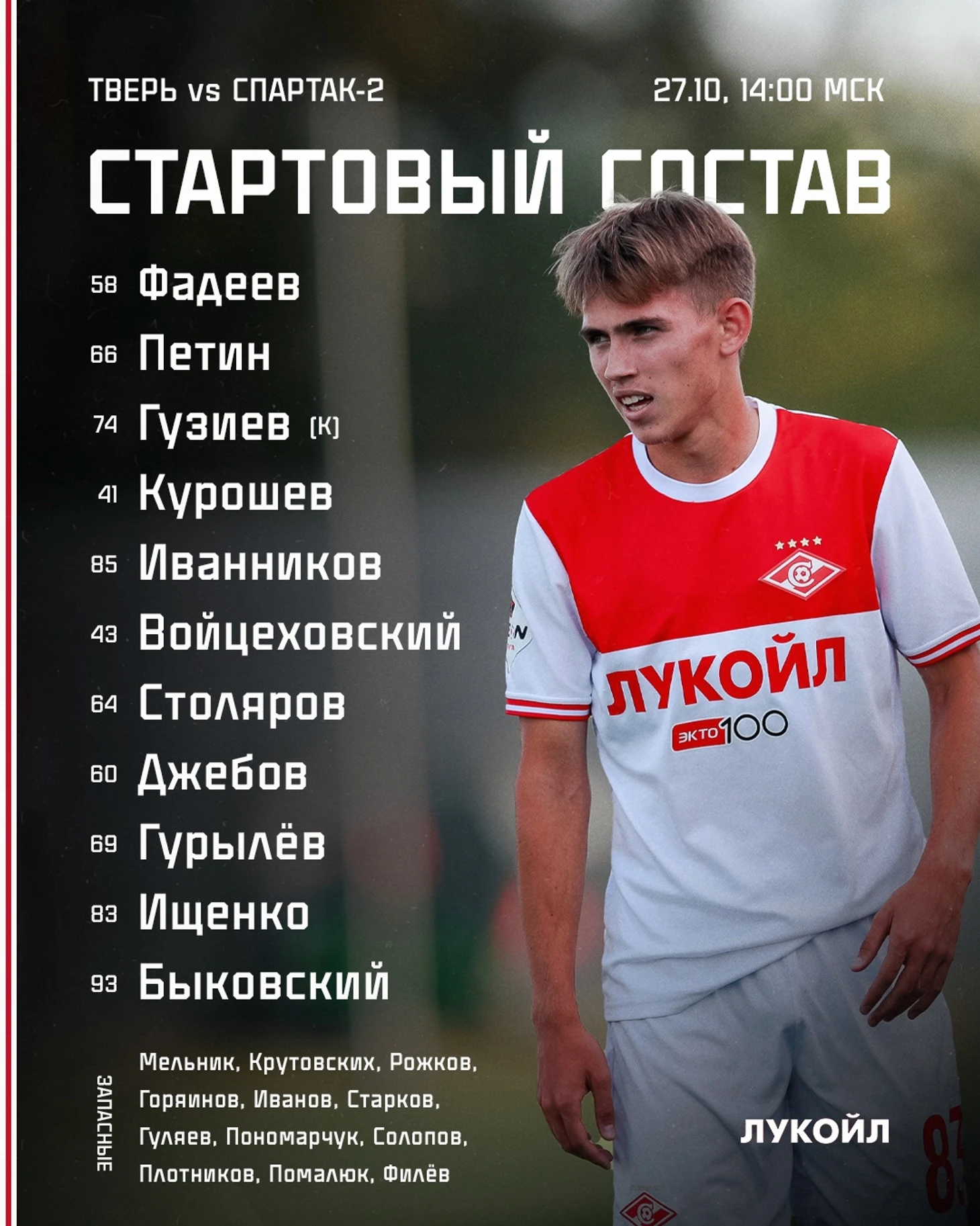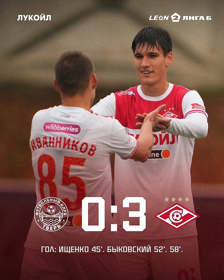 Сначала Артём Быковский перехватил неудачную передачу защитника соперника и красиво перебросил голкипера: мяч попал в перекладину, отскочил от вратаря и влетел в сетку. В протокол этот мяч был записан как автогол тверского стража ворот. Но все же Артём без гола не остался: через несколько минут наконец-то сработала его связка с Дмитрием Иванниковым, которая была чрезвычайно эффективна в прошлом сезоне в молодежном первенстве. Быковский с 12 голами теперь делит вторую строчку в списке бомбардиров группы. У лидирующего спартаковца Виталия Карпенко 18 мячей. Четвертый гол в этой встрече мог забивать Абдулло Джебов, но, замыкая прострел Даниила Плотникова, он попал в штангу. Джебов играл не просто в городе, где прошло его детство, но и против своего двоюрдного брата Анушервона.