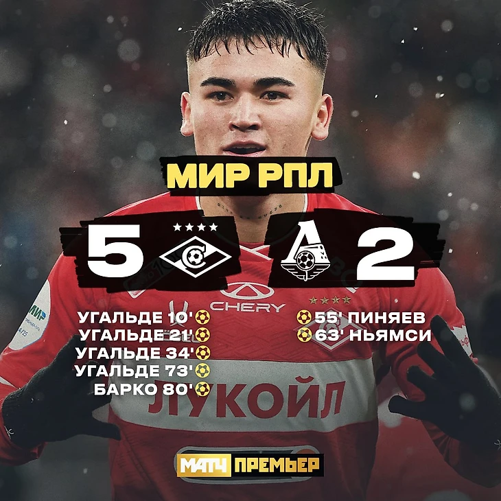 Соперник. Конечно, в какие-то моменты можно сказать «подавал признаки футбольной жизни», но, согласитесь, что 5:2 – это победа была более, чем убедительна! Бенефис Манфреда Угальде. Четыре гола в таком дерби с командой, идущей в первой тройке – это действительно событие. В нынешнем 21 веке ни один игрок красно-белых такой результативности в одном матче еще не показывал! Это был действительно матч Угальде, который вышел вперед в споре лучших бомбардиров чемпионата! А биться было с кем, поскольку до того лучший результат был у Батракова из того же «Локомотива» - 10 забитых мячей. Но теперь у Угальде – 12!