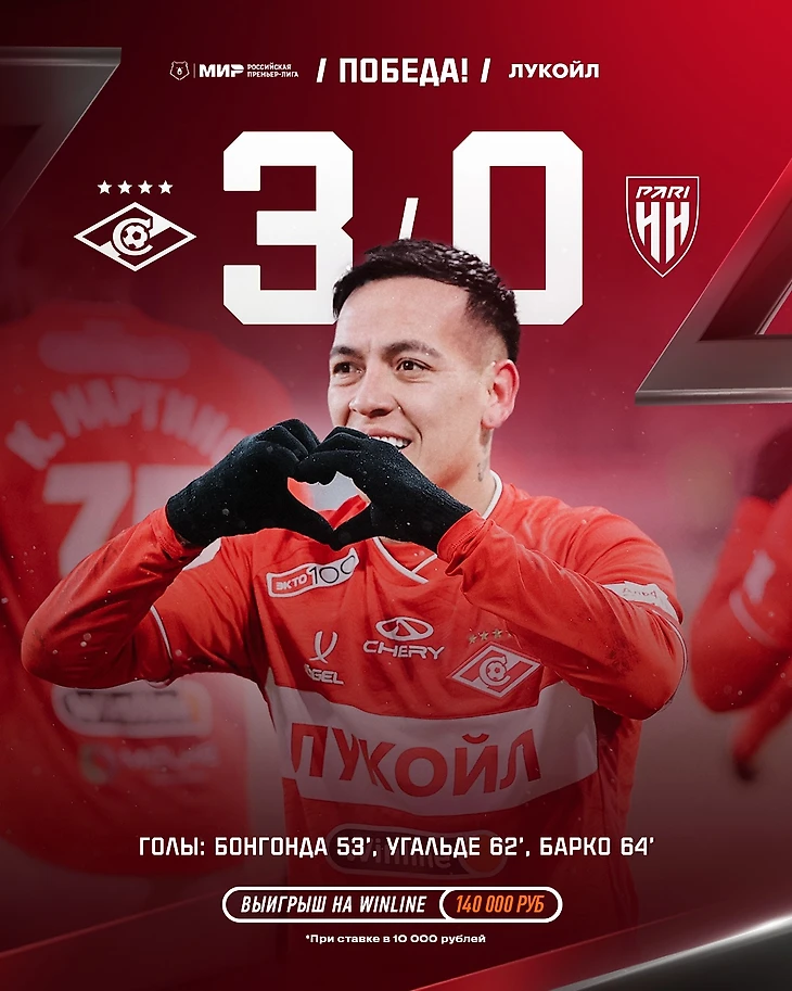 «Спартак» (Москва) — «Пари НН» (Нижний Новгород) — 3:0 (0:0).