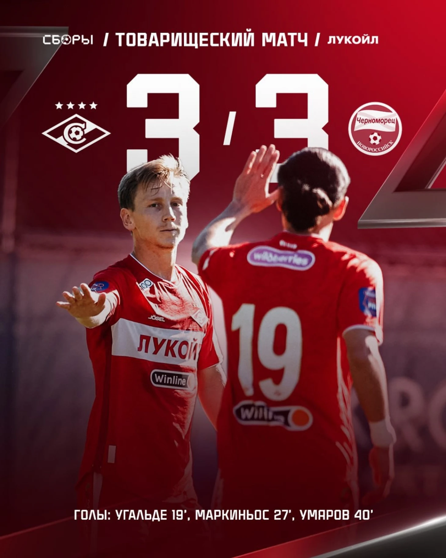 После первого тайма «Спартак» вел 3:0. Отличились Манфред Угальде (19-я минута), Маркиньос (27-я) и Наиль Умяров (40-я).