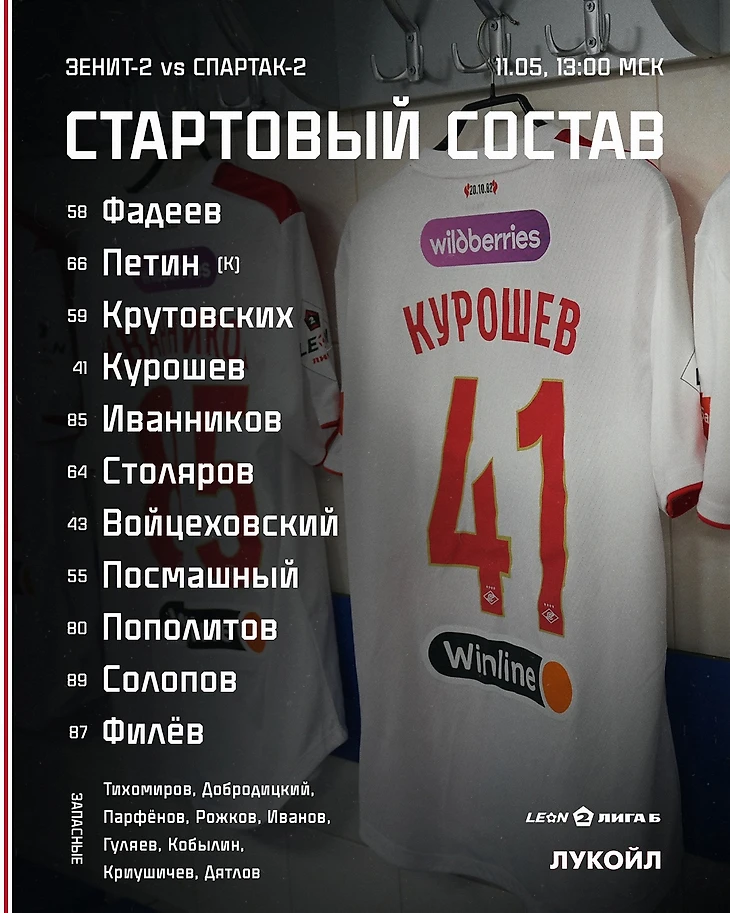 «Спартак-2»: Фадеев, Петин (к), Курошев, Крутовских, Иванников, Столяров (Иванов, 74), Войцеховский, Посмашный (Криушичев, 90), Пополитов (Кобылин, 90), Солопов (Гуляев, 59), Филёв.