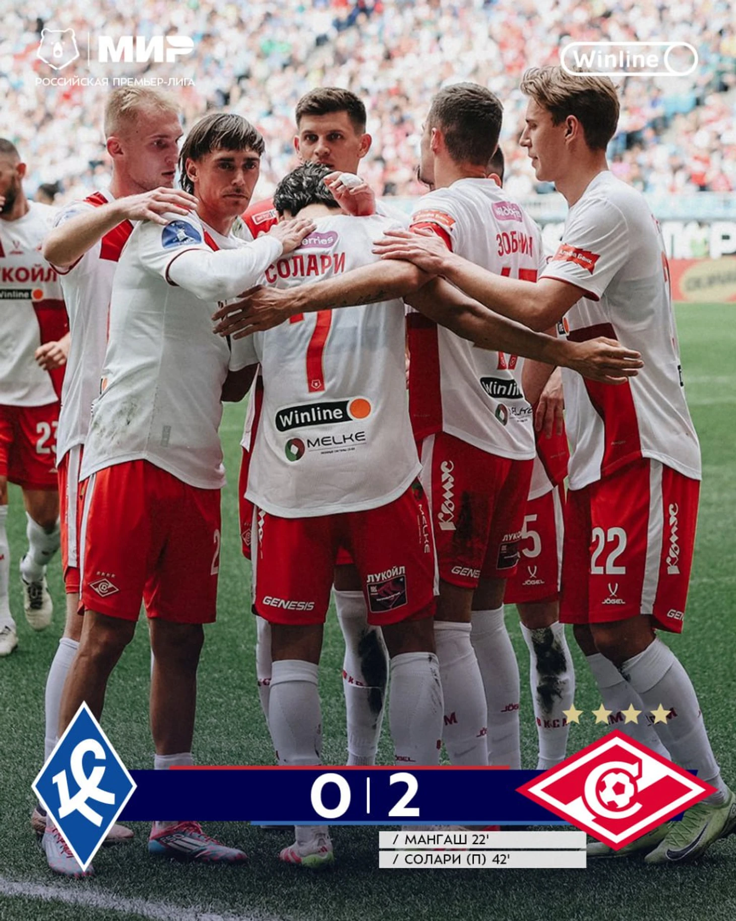 На 42-й минуте преимущество «Спартака» удвоил Пабло Солари. Он реализовал 11-метровый удар.