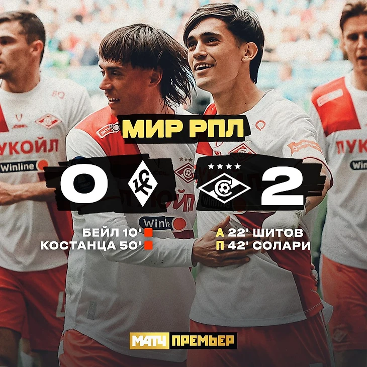 А до перерыва спартаковцы успели еще и увеличить счет в свою пользу. Медина был сбит в штрафной площади и назначенный пенальти точно реализовал Солари – 2:0.
