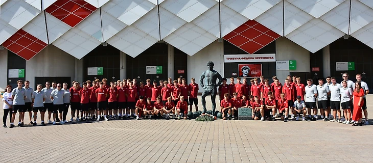 Сегодня же на «ЛУКОЙЛ АРЕНЕ» и в нашем музее состоялись специальные памятные экскурсии, посвященные Фёдору Фёдоровичу. Больше сотни мальчишек и девчонок из Академии имени Черенкова приехали к нам на стадион, чтобы услышать рассказы о легендарном спартаковце и возложить цветы к его памятнику у Южной трибуны.