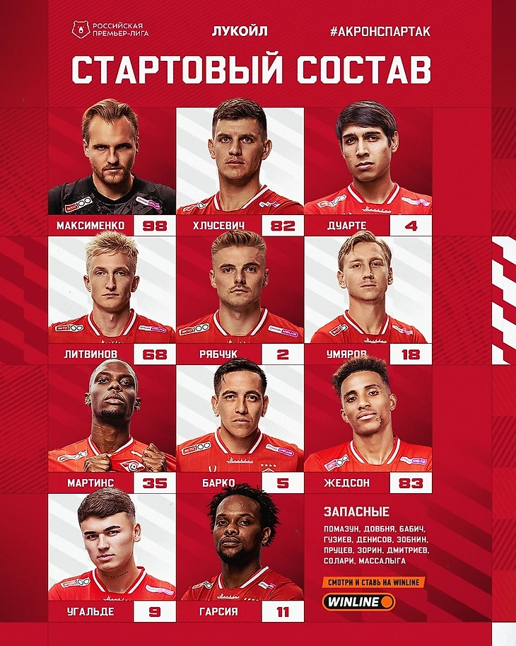 Состав «Спартака» на матч с «Акроном»