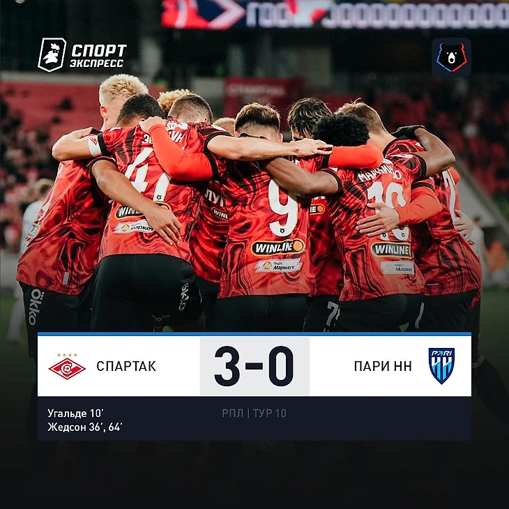 «Спартак» на своем поле обыграл «Пари НН» в матче 10-го тура РПЛ — 3:0.
