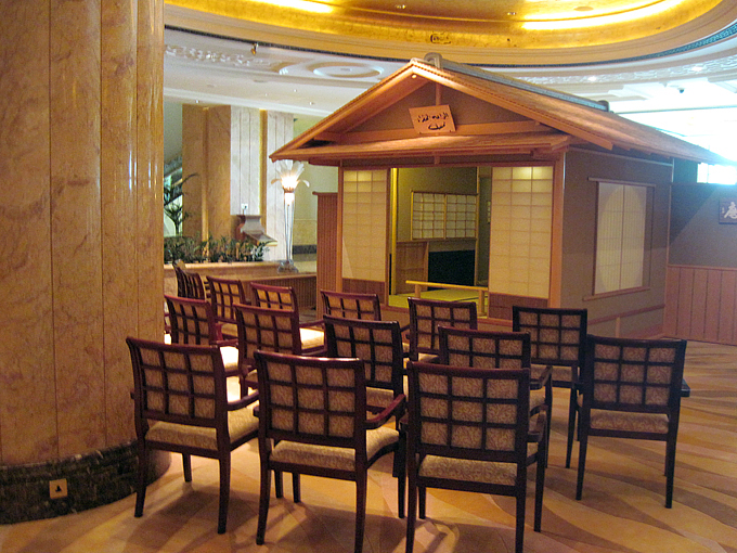 Или чайному домику, подаренному Его Высочеству шейху Мохаммеду бин Зайеду Аль-Нахайяну, наследному принцу Эмирата Абу-Даби, мастером чайных церемоний в 15-м поколении Дженшитцу Сен из японского Киото:
