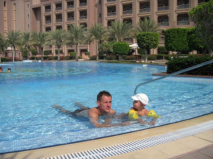 С того момента пляж служит только местом тренировок, а водные процедуры принимаются так, как это делают Артём Ребров с сыном Платоном: