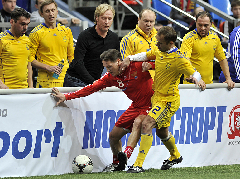 - Там вообще странно было. Подъезжаешь - в жизни не поймешь, что это стадион: "Все, выходим". - "А где стадион-то?" - "Да вон калитка…" Нас смех душил. Но самый прикол случился перед выходом на поле - коридор настолько узкий, что вдвоем не протиснуться. Все перемешались: соперник, ты, соперник… А еще надо мальчика куда-то пристроить. Сверху потолок подпирает. Мне-то ничего, а вот Адамс и Бергкамп пригибались.