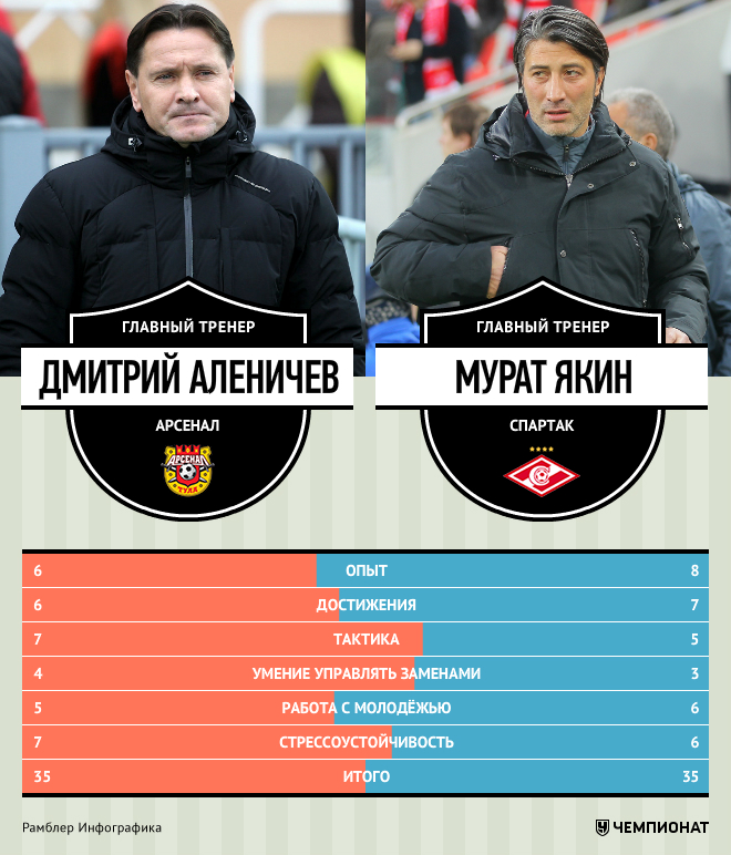 Удачные замены делал и Мурат Якин. Но в последнее время мы видим, как «Спартак» проваливает вторые таймы, а замены швейцарца после перерыва не работают. Так что если мы говорим именно об управлении игры, то в этом компоненте я бы преимущество Якину не отдавал. Плюс на протяжении большей части сезона обойма у швейцарца была шире, а класс имевшихся в распоряжении футболистов явно несопоставим с уровнем игроков, которые есть у Аленичева.