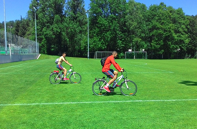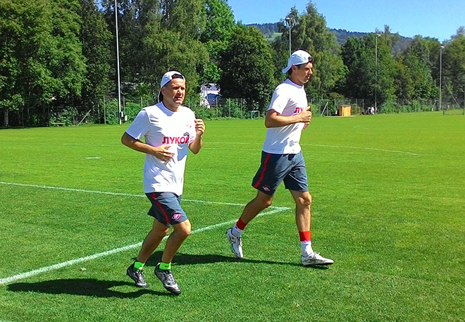Путь от пруда до тренировочного поля лежит через тропинку, вдоль которой пасутся овцы. Парнокопытные старательно щиплют травку на раскинувшихся лугах и не обращают на людей никакого внимания. Посторонних глаз здесь, впрочем, не так уж много: три журналиста из России да 5-6 футболистов «Спартака», добирающихся до тренировок не на автобусе, как их партнёры, а с помощью велосипедов.