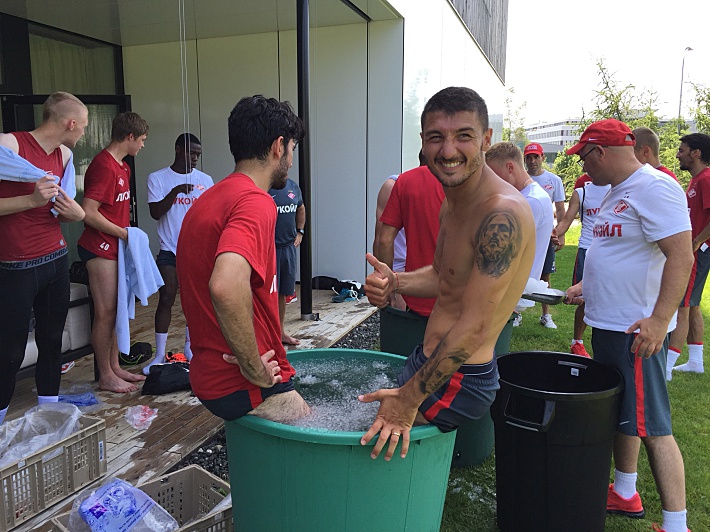 Рядом с отелем игроков ждали ледяные ванны. По такой жаре, да после нагрузок, – самое то. Даже теплолюбивый Ромуло, кажется, долго не хотел вылезать из жбана.