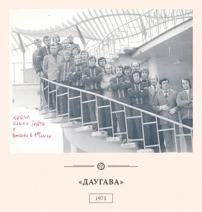 Период выступления за рижскую «Даугаву». В том году наша команда вышла в первую лигу. На фото неподалёку от меня можно увидеть моего партнёра по команде Александра Старкова, который в середине 2000-х руководил «Спартаком». Я стою на этой лестнице последним.