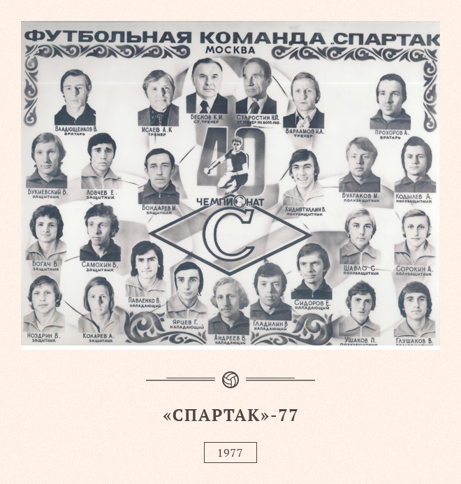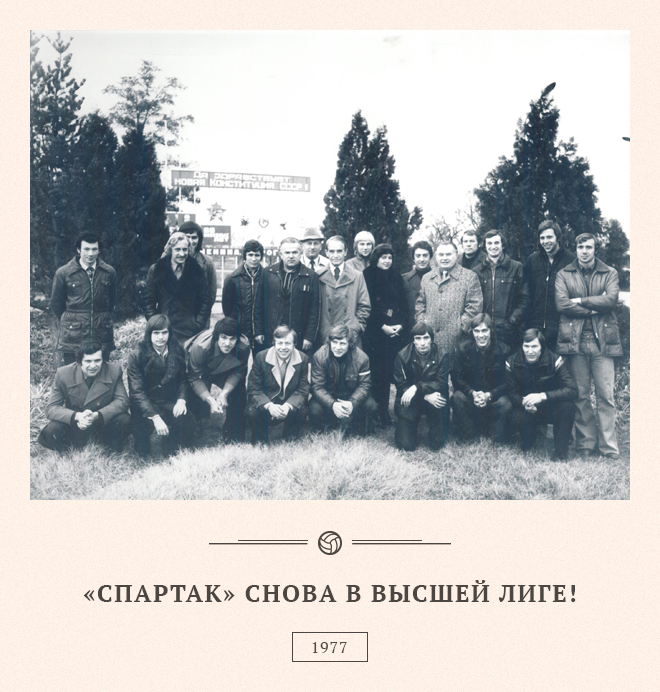В 1977 году перешёл из рижской «Даугавы» в московский «Спартак». Командная фотография. Этим составом мы выиграли чемпионат первого дивизиона и вышли в Высшую лигу чемпионата СССР.
