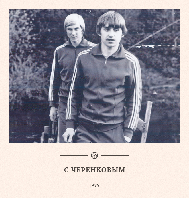 Тарасовка. Река Клязьма. На фото – Фёдор Черенков и я. Константин Иванович Бесков иногда разрешал нам накануне матчей вместо разминки ходить на прогулки, чтобы мы могли немного расслабиться. Пару слов о футбольном пути Черенкова. Знаю, что Бесков не хотел брать Фёдора в «Спартак» в 1977 году, но в конечном итоге взял его в команду по просьбе многолетнего начальника красно-белых Николая Петровича Старостина. Черенков стал быстро прогрессировать и вскоре стал основным игроком «Спартака».