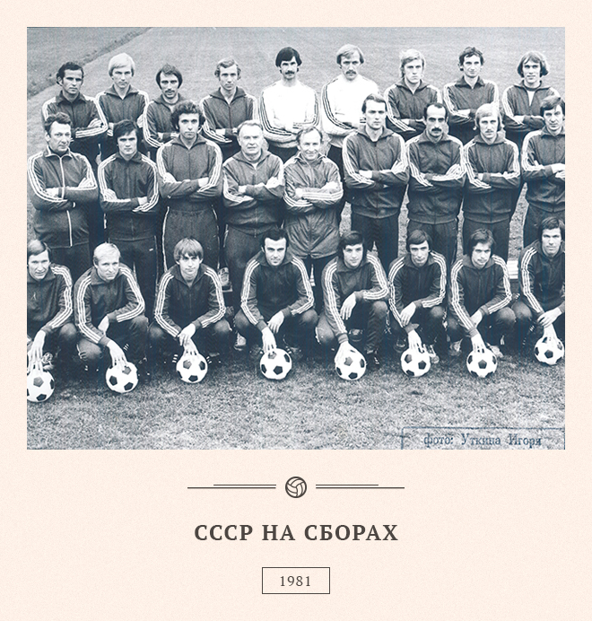 Новогорск. Сборная СССР в полном составе. На фото можно увидеть таких игроков, как Олег Романцев, Владимир Пильгуй, Вагиз Хидиятуллин, Фёдор Черенков, Георгий Ярцев и многих других. Я – второй слева в верхнем ряду.
